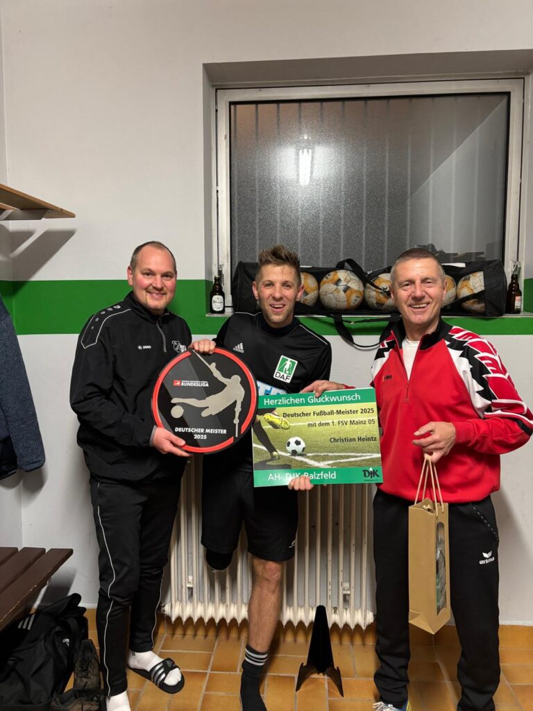 Die DJK Balzfeld und insbesondere deren AH gratulieren Christian Heintz und seinem 1. FSV Mainz 05 zur erneuten Meisterschaft im Deutschen Amputierten Fußball. Christian, wir sind stolz auf Dich!
